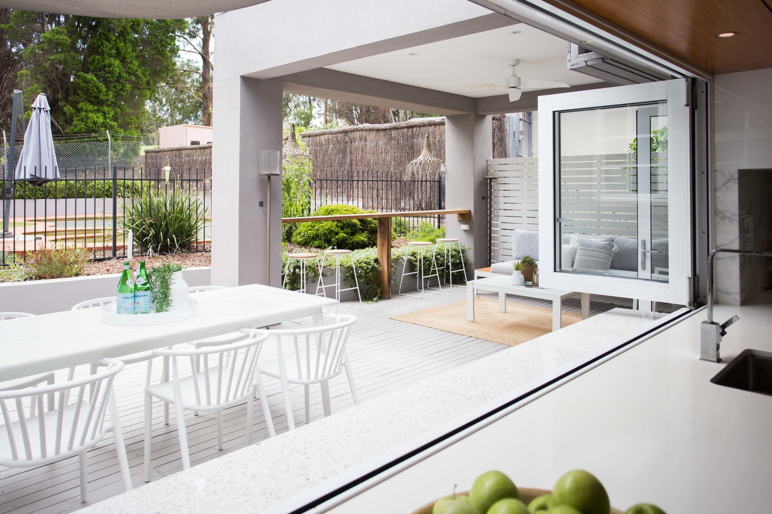 Outdoor Property Styling ideas, decking and white outdoor furniture used in North Rocks Property
